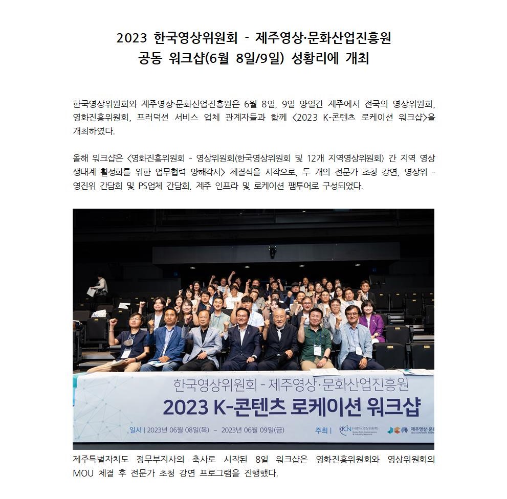 2023 한국영상위원회-제주영상·문화산업진흥원 공동 워크샵 성황리에 개최
