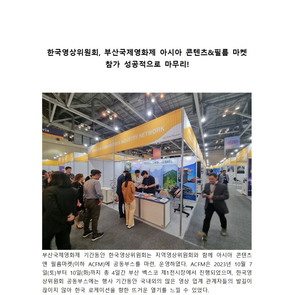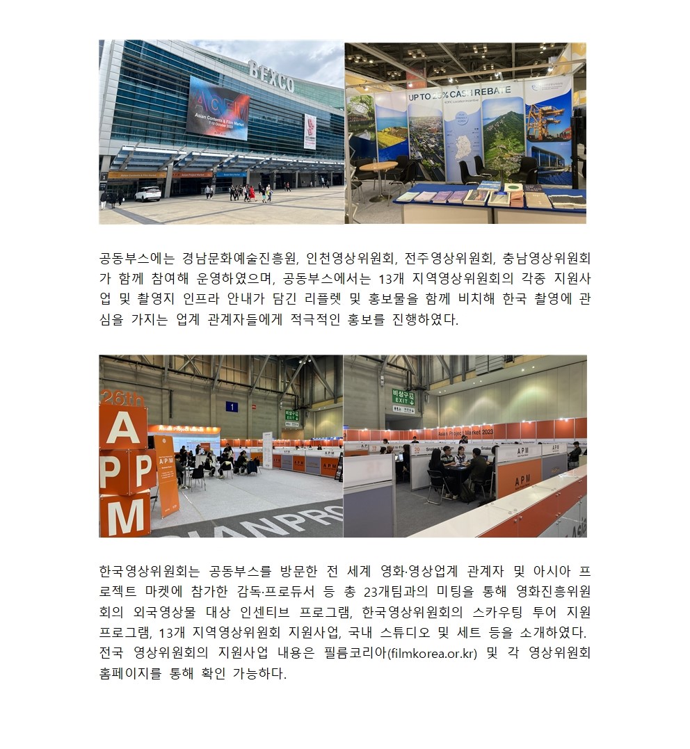 한국영상위원회, 부산국제영화제 아시아 콘텐츠&필름 마켓 참가 성공적으로 마무리!
